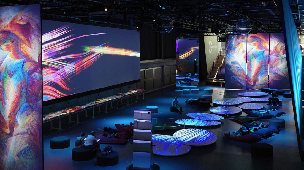 23 projectors, 110 spotlights and a three-dimensional sound system interact with large-format projection surfaces and mirrors to create an experience that appeals to all the senses.